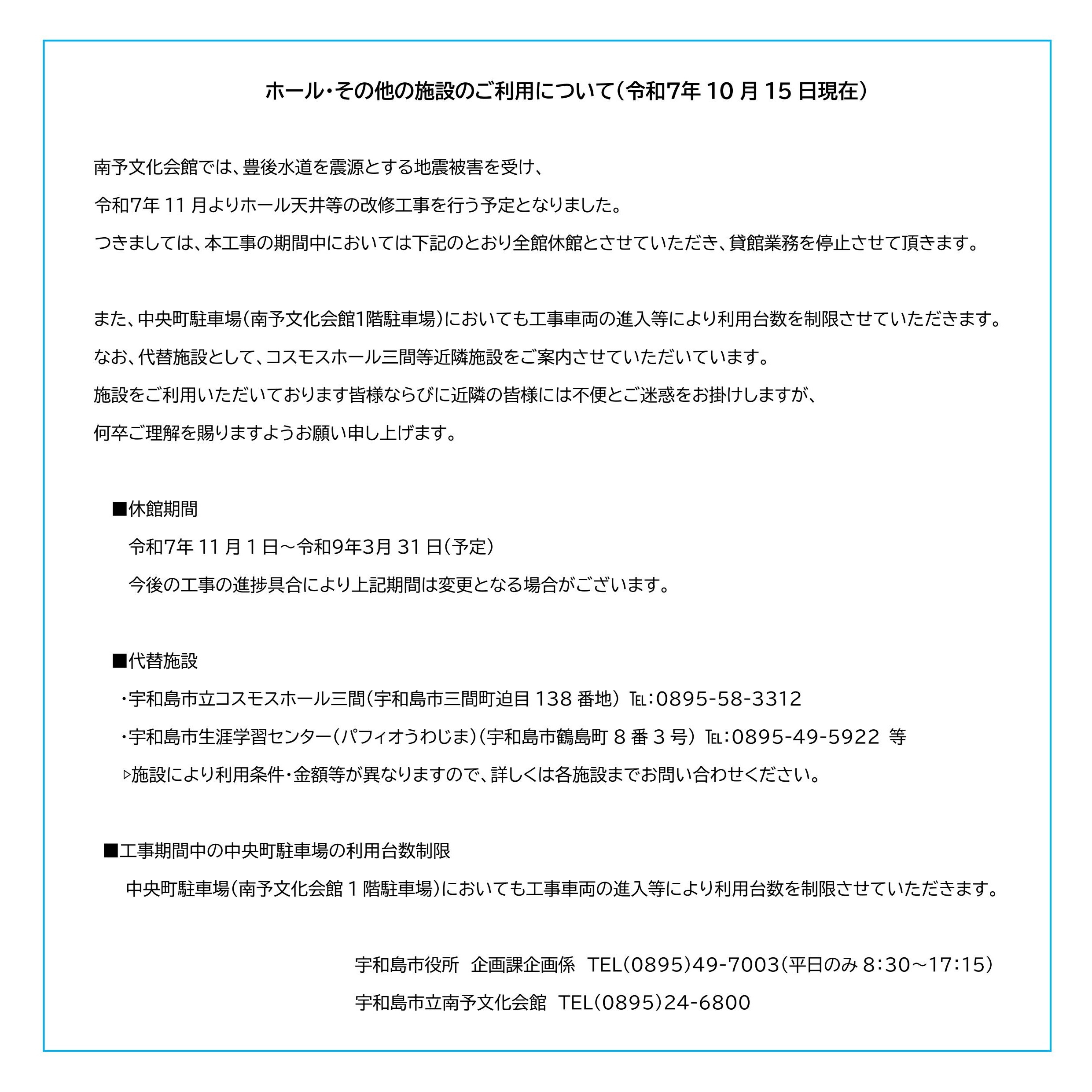 ホール・その他の施設のご利用について(令和7年10月15日現在)